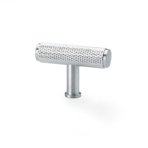 Alexander And Wilks Knurled T-Bar Cupboard Knob 55mm Polished / Satin Chrome AW801D-55-PC/SC