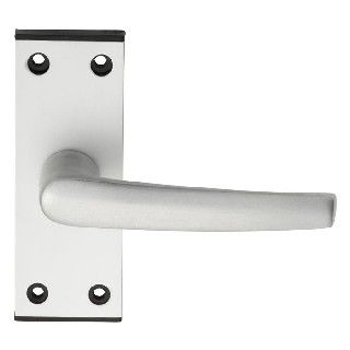 Lever on latch backplate. Aluminium furniture. Straight lever on a rectangular backplate with black end inserts top and bottom accentuating the satin finish.The backplate has four face fixing points for an easy and secure fitting. Comes with a 10 year mechanical guarantee and is Fire door rated. Suitable for domestic and commercial.