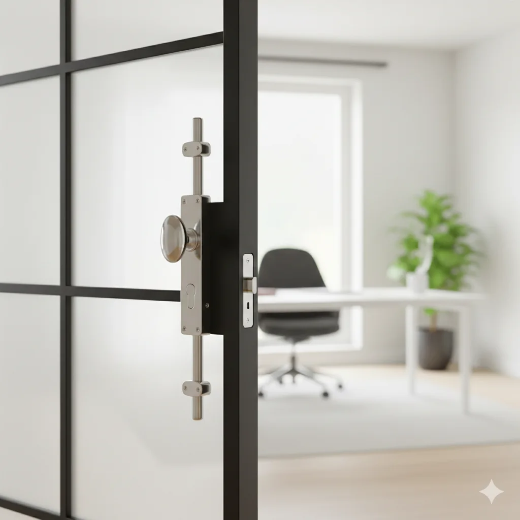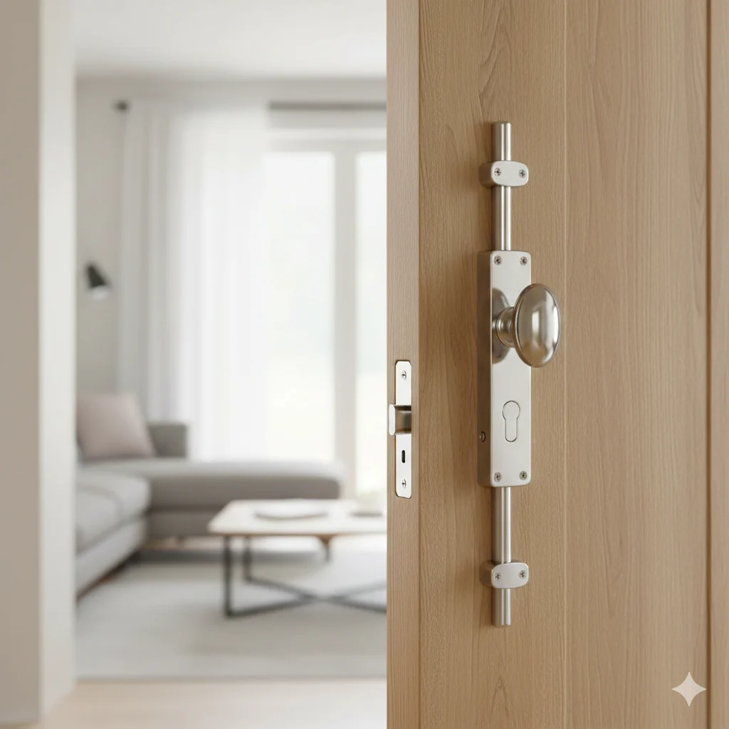 Oval knob locking brass door espagnolette bolt/Cremone bolt upto 8.5′-Polished chrome