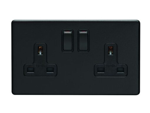 Eurolite 2 Gang 13Amp DP Switched Socket Round Edge Matt Black Plate White Rockers
