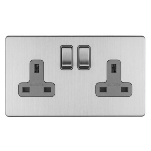 Eurolite Concealed 3mm 2 Gang 13Amp Dp Switched Socket – Stainless Steel