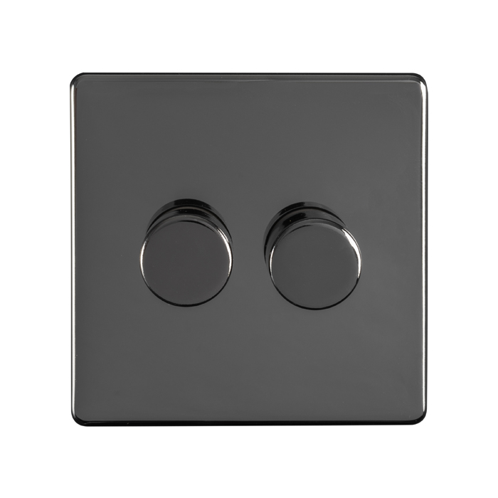 Eurolite Ecbn2Dled 2 Gang Led Push On Off 2Way Dimmer Switch Concealed Black Nickel Plate Matching Knobs Black Trim