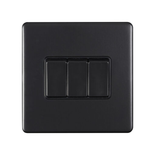 Eurolite Ecmb3Swb 3 Gang 10Amp 2Way Switch Flat Concealed Matt Black Plate Black Rockers