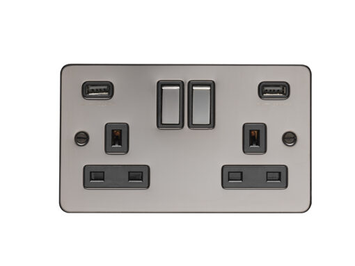 Eurolite Efbn2Usbbnb 2 Gang 13Amp Switched Socket With A Comb 3.1 Amp Usb Outlet Enhance Flat Black Nickel Plate Matching Rockers Black Trim
