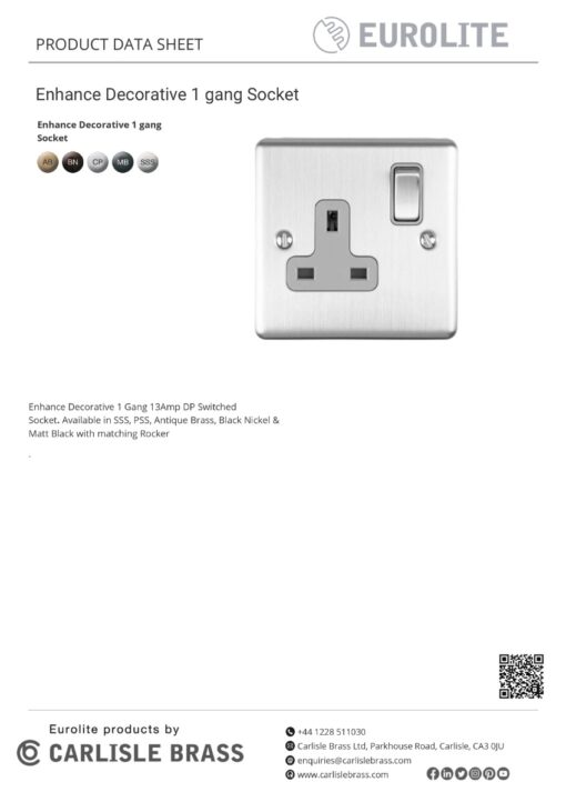 Eurolite Enhance Decorative 1 Gang Socket – Satin Stainless