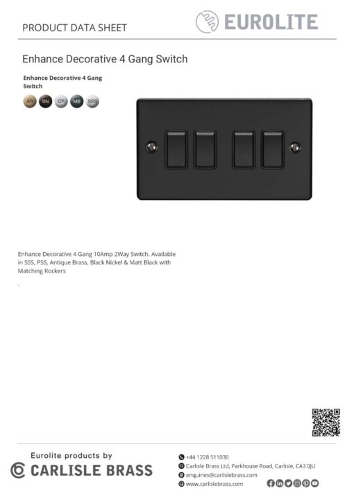 Eurolite Enhance Decorative 4 Gang Switch – Satin Stainless
