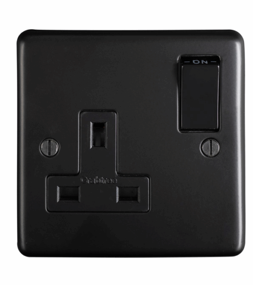 Eurolite Mb1Sobnb 1 Gang 13Amp Dp Switched Socket Round Edge Matt Black Plate Black Nickel Rocker Black Trim