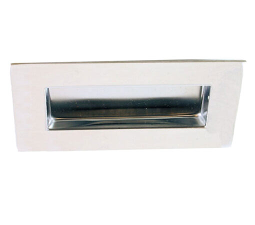 A rectangular low profile flush pull which is used mainly on sliding doors. The main cup is recessed back into the door to leave a flush appearance. For use on doors, wardrobes or cupboards. Part of the Steelworx Stainless Steel range