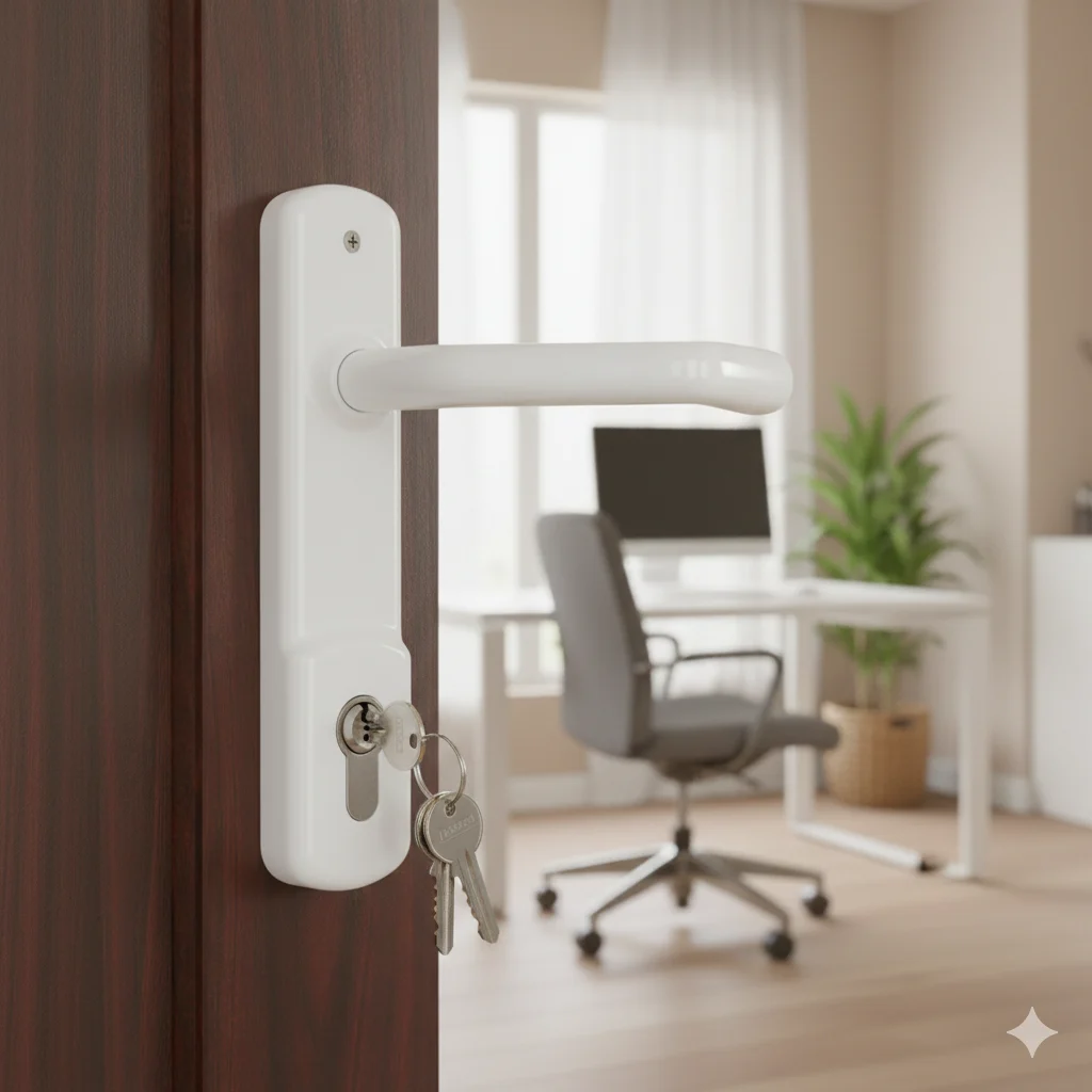 - When locked ,the lever is disengaged from the mechanism and still pulls down therefore preventing unauthorised entry.