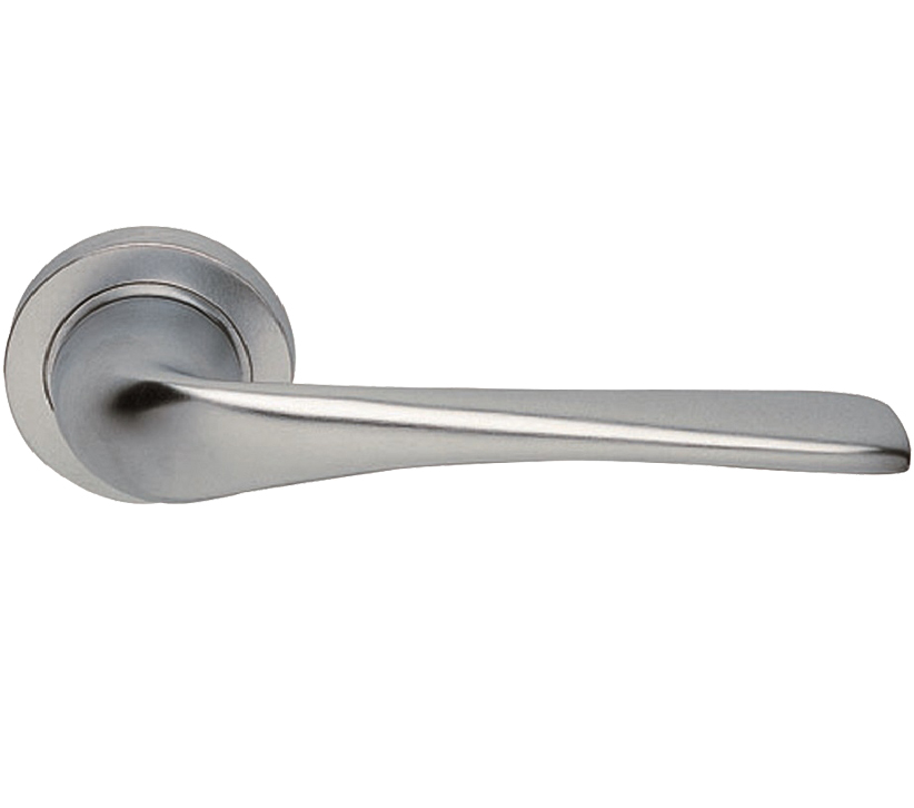 Lever on a concealed fix 2 part screw on round rose. The lever tapers to a narrow end and with its broad flat top provides ample surface to grasp