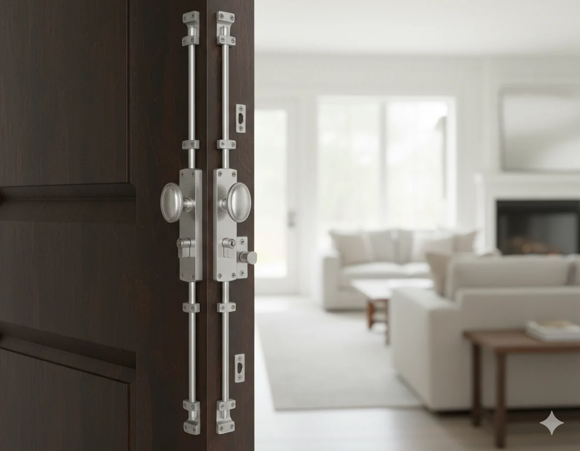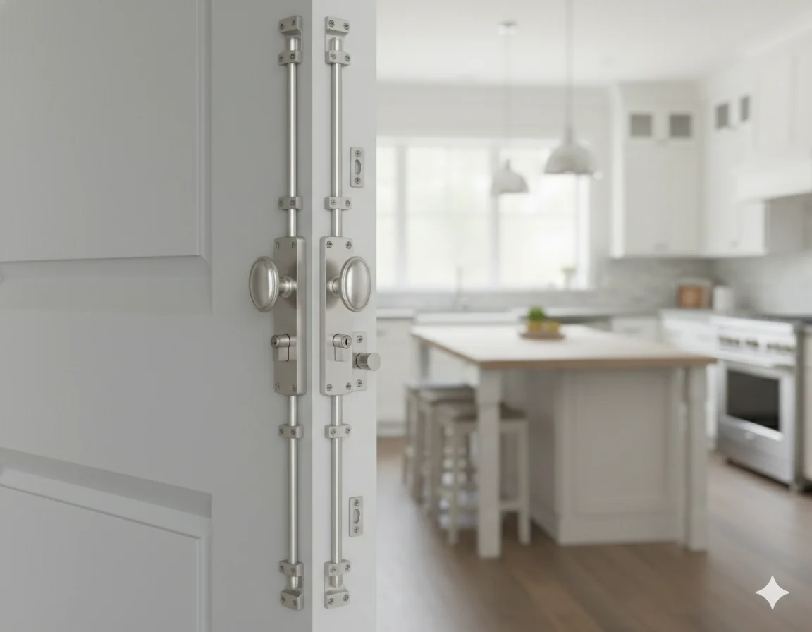 EURO PROFILE LOCKING OVAL KNOB DOOR ESPAGNOLETTE BOLT/CREMONE BOLT UPTO 8.5″-SATIN NICKEL