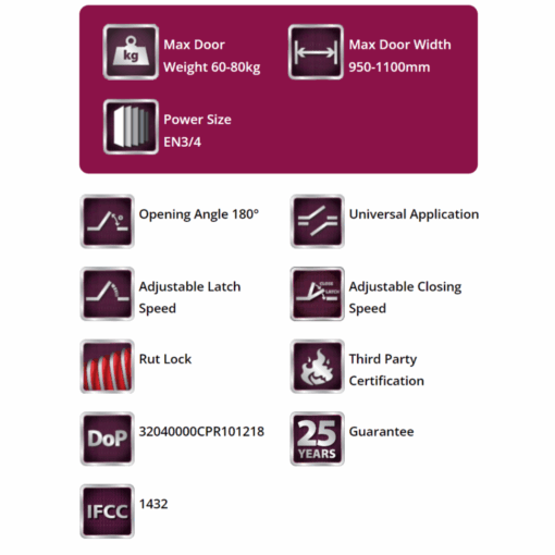 Rutland TS.3204 Door Closer c/w Cover, Flatbar Armset Satin Nickel. 3204 Certifire approved Door Closer is ideal for mid-range contracts, it can be fitted to almost all common door types. Successfully third party tested to BS EN1154 & CE marked up to power size 4.