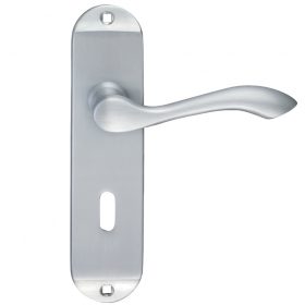 - The Fulton and Bray Arundel door handles on backplate have a curved lever that offers smooth flowing lines and a short backplate with smooth rounded edges and a single visible screw fixing at each end